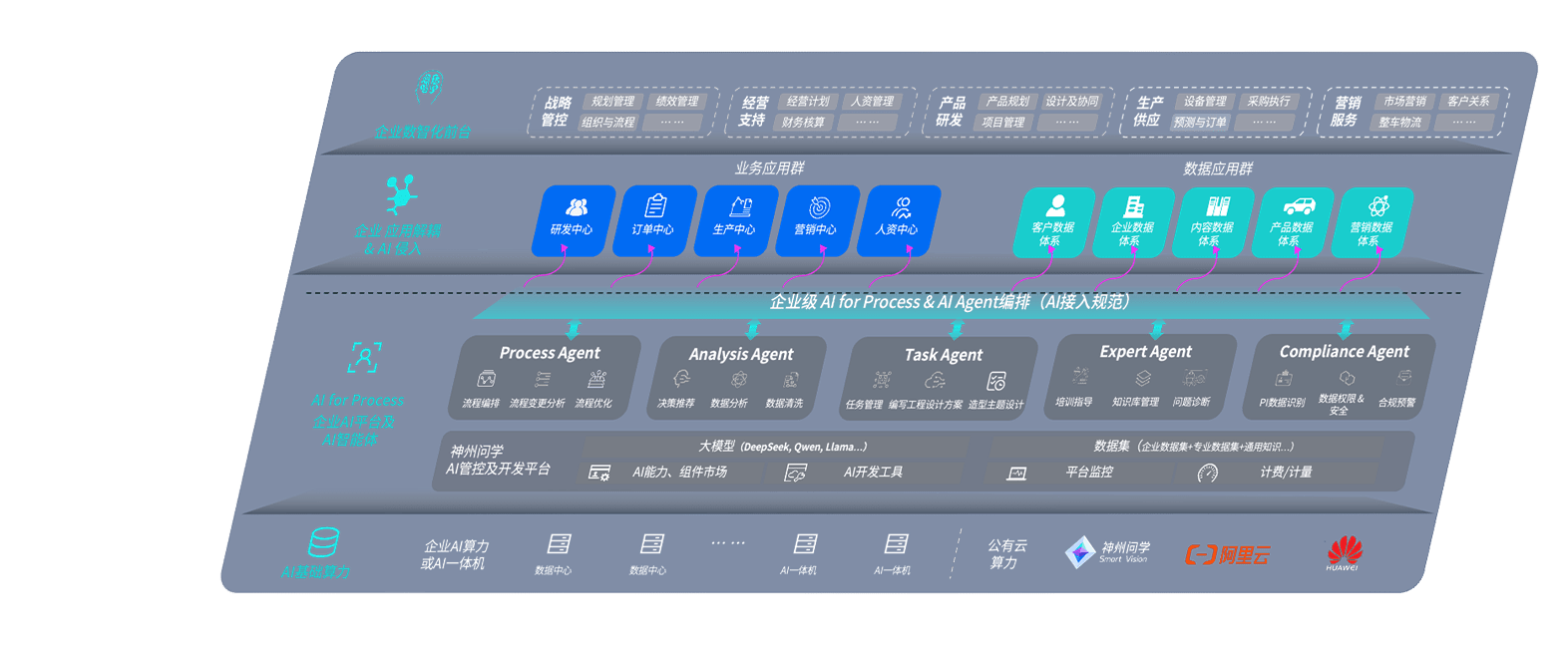端到端的一站式AI工作空间深度融合了从企业战略规划到日常经营的全流程业务板块,,,,定向解决车企内部领域多、、、部门多、、、链条长、、、场景碎片化等难题,,,,支持车企快速构建以AI为核心的生产力写作体系,,,实现任务执行与AI能力的无缝集成与交互